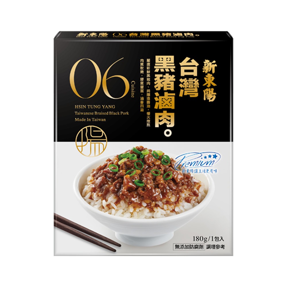 老字號品牌新東陽推出台灣黑豬滷肉調理包,其美味源自於對食材的堅持,嚴選新鮮台灣黑豬肉,搭配新東陽獨家調製的純釀造醬油滷汁,經過慢火細燉,成就了肉質軟嫩、膠質豐富的銷魂口感,滷香濃郁四溢,鹹甜適中不死鹹。